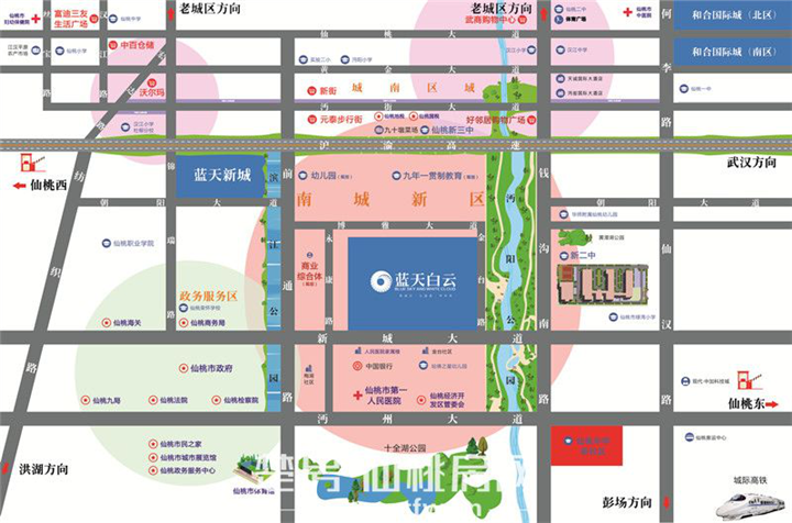 从区域的土地规划性质来看,此区域内包含了住宅、商业、教育等用地,各项配套功能规划完整。南城新区土地集中出让,区域内利好频出,各项建设热火朝天!目前区域内已引进新二中、沔阳公园、新人民医院、市民之家、市政府办公大楼、体育中芯等配套设施,近几年南城新区已经成为仙桃新房供应的主力,也是仙桃的最有发展潜力区域!