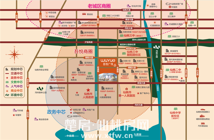 政务服务:集合仙桃市政府、九局、市民之家等政企结构,重点打造市政高地。
