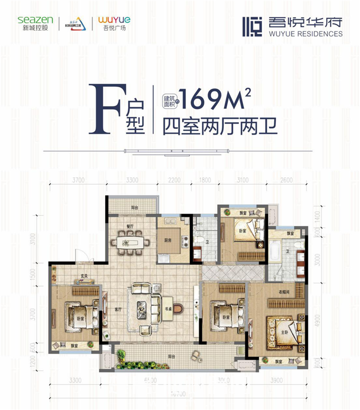 吾悦华府推出建面约110-169㎡奢华学府小高层/高层,为人们提供舒适美观、实用大方的居住环境,礼遇奢适户型,共享舒适生活。