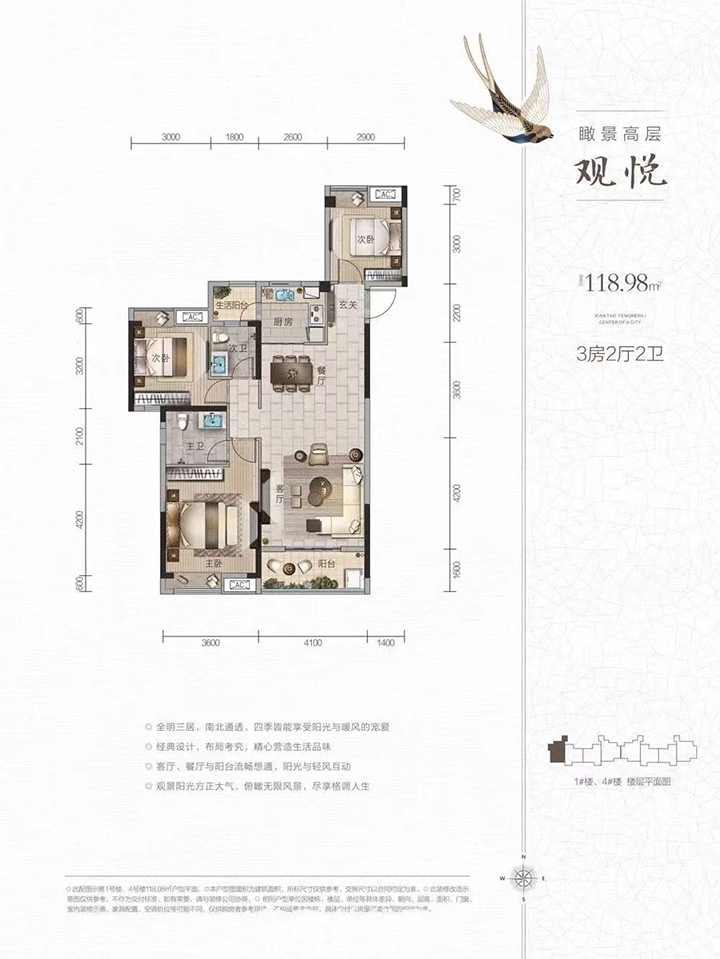 项目目前新推的是19#和25#楼,均为33层的高层住宅项目,层高3米。19#楼是建面约110㎡和130㎡的户型,共计132套;25#楼产品面积段是108㎡—126㎡,均为三室和四室户型,共计251套。