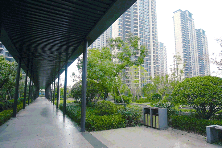 2、整个项目内部地面没有规划停车位,均为地下停车位。小区建有特色风雨连廊,整体绿化率达45%,高绿化率和低容积率让业主有较高的居住环境。
