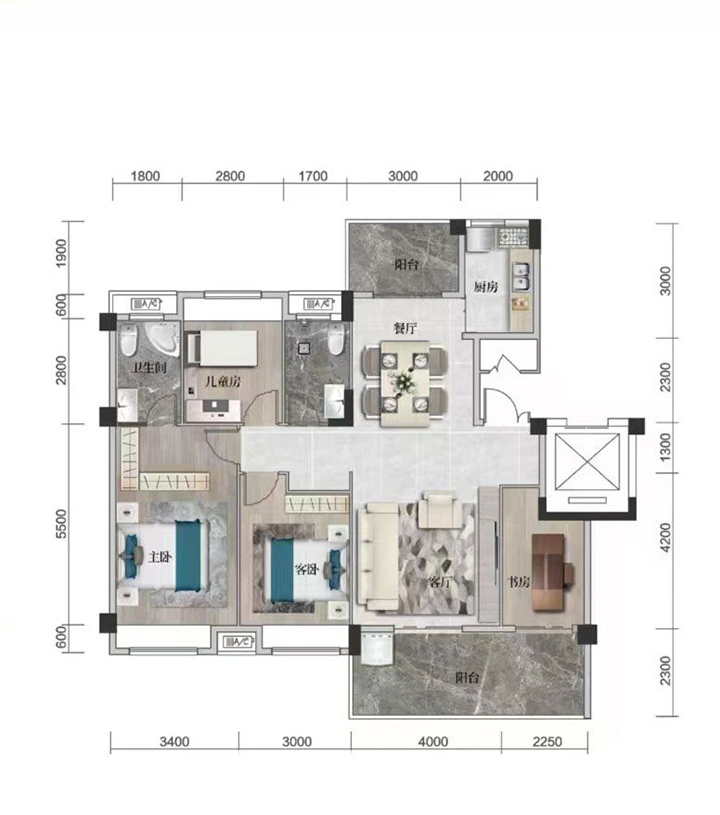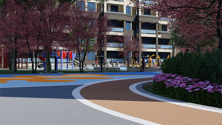 小区整体容积率2.5,绿化率35%,结合中国山水画的意境,打造全新的围合式新中式园林景观。对住宅区内部活动场所分类设计,如中央会客厅、环形跑道、阳光草地,户外书吧、户外棋牌等,致力于成为仙桃品质居住地。