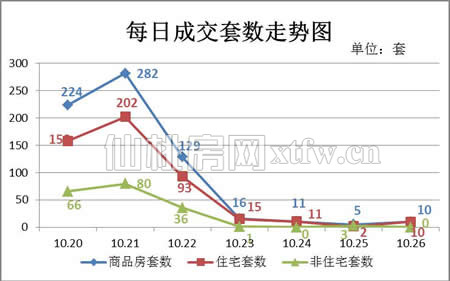 据仙桃房网新数据统计:2014年10月20日至2014年10月26日仙桃楼市销售总交易记录为677套,成交面积69051.85㎡,成交金额282002030元,均价约4083.92元/㎡。其中住宅成交94套,成交面积为54762.22㎡,成交金额约167682681元,成交均价约3062.01元/㎡;非住宅销售186套,成交面积14289.63㎡,成交金额约114319349元,成交均价约8000.16元/㎡。(此数据供参考,请以官方发布数据为准。)
