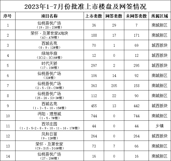 7月份新建商品房销售4.31万平方米(380套),同比减少54.3%;其中,新建商品住房销售4.08万平方米(333套),同比减少51.5%。