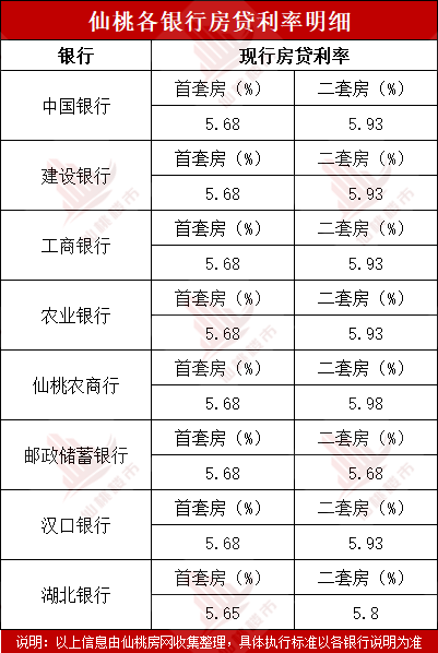 去年6月我们统计的仙桃各银行的首套房贷款利率普遍都是5.73%-5.88%,二套房是5.98%-6.13%;而根据我们近日了解到的情况来看,目前仙桃市各银行首套房执行利率基本在5.68%,二套房执行利率基本在5.93%-5.98%。