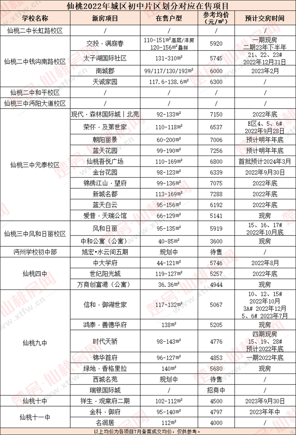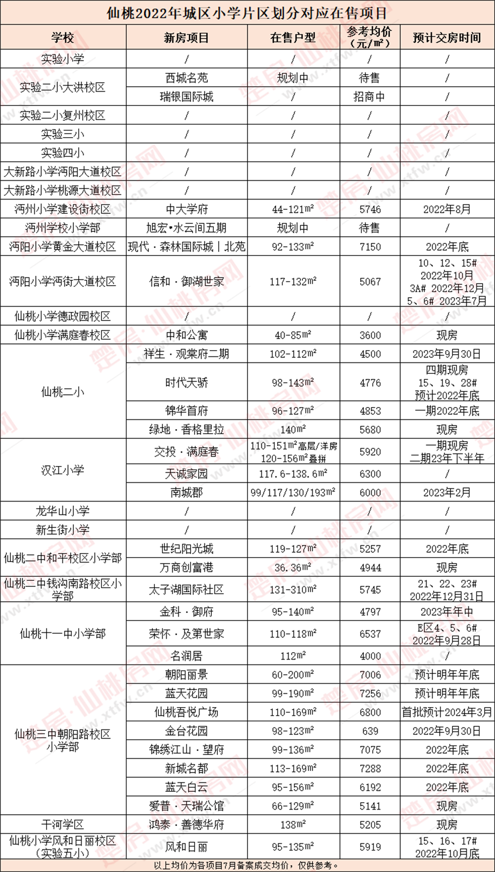小编梳理了仙桃各个小学、初中对应的新房在售项目、房价和交房时间,及各校区对应部分楼盘小区,以便有需求的购房者参考。加微信:18986922089(手机同号)获取2022年仙桃城区招生辖区范围图,了解更多项目详情~