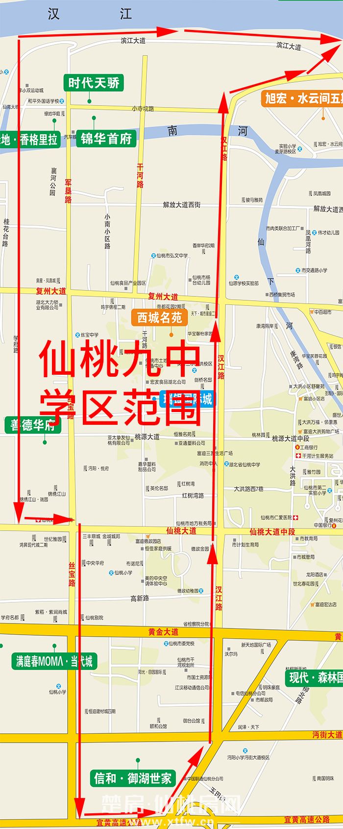 对应楼盘:仙桃城市广场、宏运名居、财源盛景、时代广场、仙河城市花园、青青家园、一品苑、富华园、幸福花苑、笆篓湾金居、聚福园、忆美·国际公馆、仙桃·福星城、翰墨苑、上苑一品、和合国际城南区、亿美·翰林公馆、新冠·漫城林语、新河小区