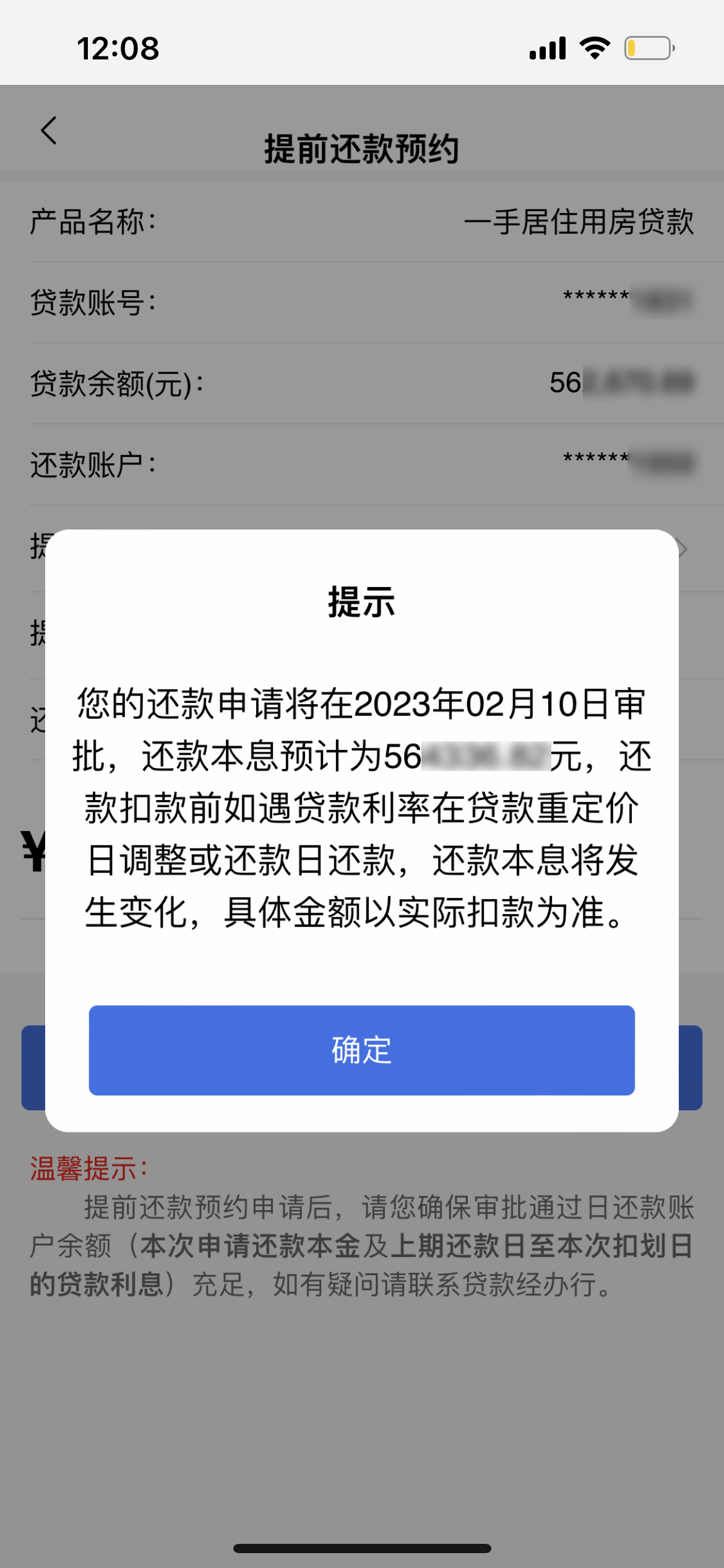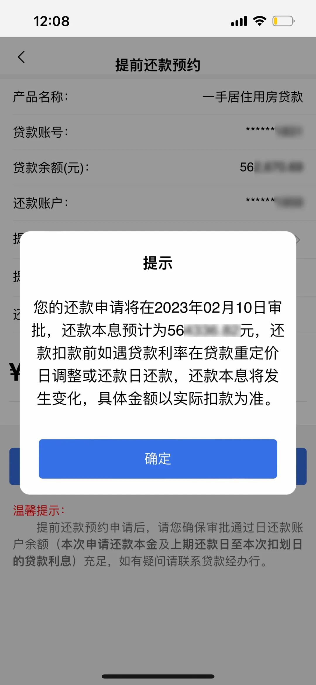 申请“提前还贷”的流程,其实也并不复杂。以开头提到的王女士为例,她是2月3日在银行APP上提交了“提前还款预约”申请,排期到2月10日进行还款,等待时间只有一周(汉口银行)。