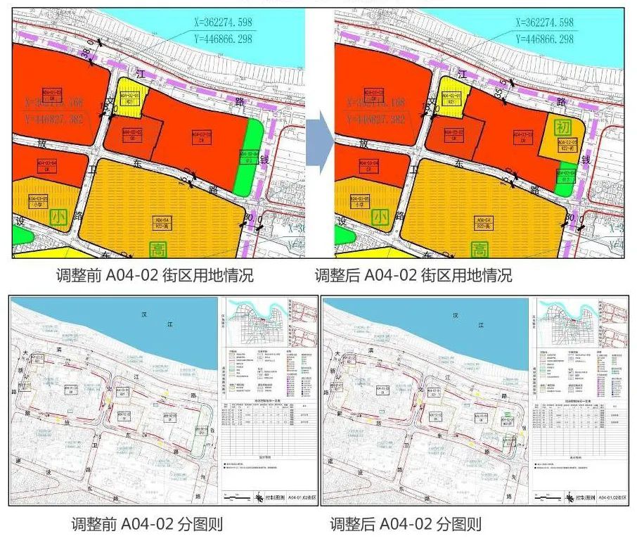 为此,仙桃市教育局申请将滨江大道以南、精英学校现校址以东、钱沟路以西的8.49亩土地调整为R22公共设施服务用地中的初中用地,将调整后的地块赋予地块编码A04-02-05。