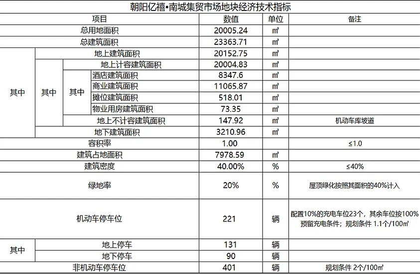 *朝阳亿禧·南城集贸市场地块经济技术指标