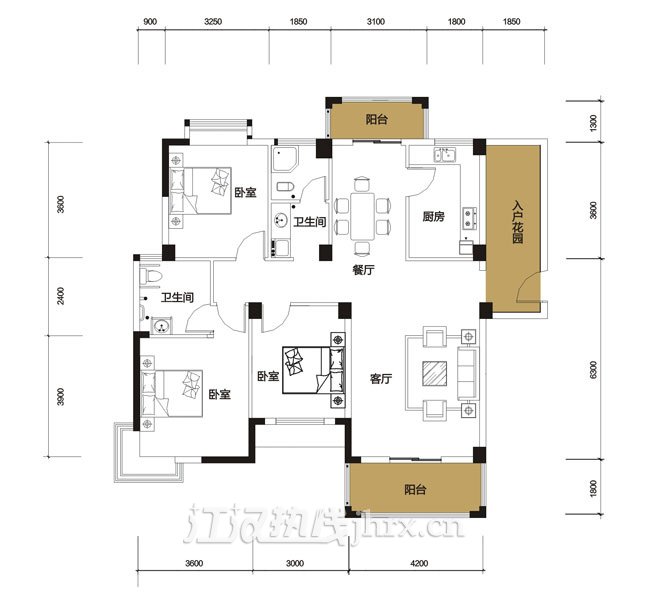 ·客厅与餐厅相连,餐会客,其乐融融 ·推门即入户花园,居家空间自然延伸 ·双卧朝阳,全面满足居住阳光需求 ·南北双阳台,更多景观,提升生活品质