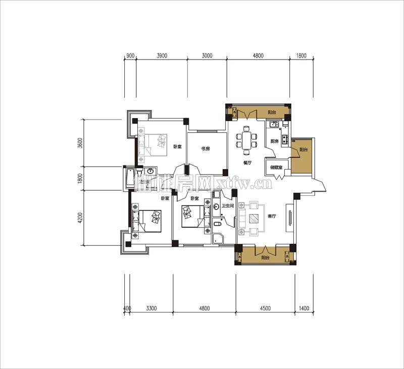 ·奢华四房,南北通透,格局方正 ·三阳台设计,舒展空间,尽收窗外无限风光 ·南北双卧设270°转角飘窗,营造舒适的起居风尚 ·带独立储藏室,空间利用度高,分区合理
